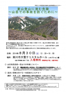 このセミナーでは、夏山登山で気を付けたいポイントについて、山岳の専門家から講演をいただきます。